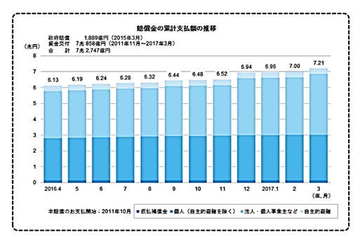 賠償金の流れは「原子力損害賠償・廃炉等支援機構」が原子力事業者の損害賠償のために必要な資金援助事業を行っている。