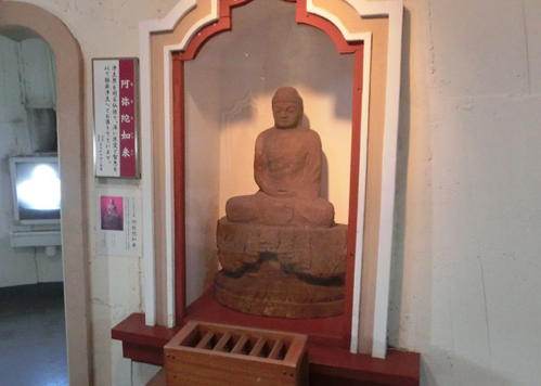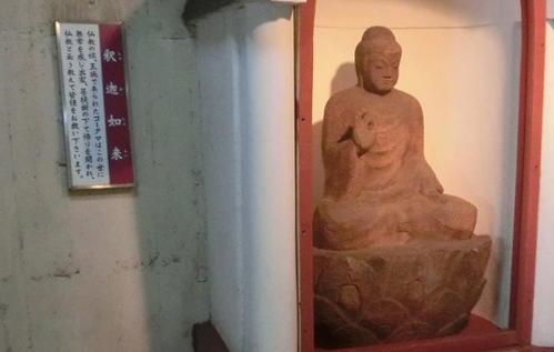 らせん階段の途中途中に、仏像が安置されていた。